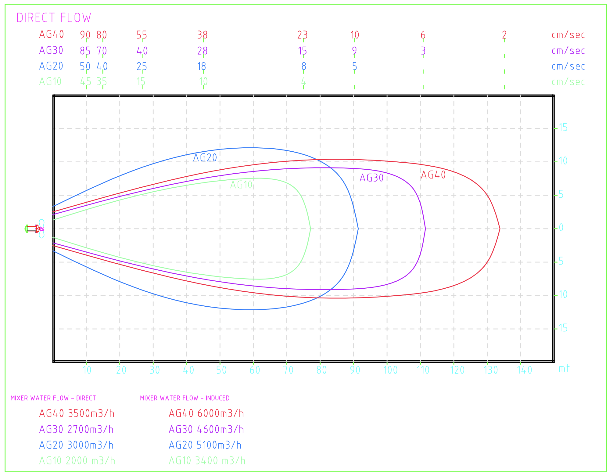Al igual que para el Stormix MA, el movimiento de la propela favorece la mezcla del agua lo cual también participa al aumento de los niveles de eficiencia de oxigenación.