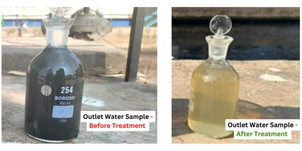 El tratamiento AQUARITIN® junto con bacterias beneficiosas, aplicado en sitio en las aguas contaminadas con aguas residuales del río Nag, redujo la DBO en un 97 %, la DQO en un 95 %, los SST en un 67 % y los coliformes fecales en un 99 %.