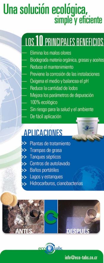Una aplicación regular de EcoTabs™ permitirá remover completamente lodos, materia orgánica y otros componentes y mantener luego un sistema de tratamiento eficiente y sin malos olores.